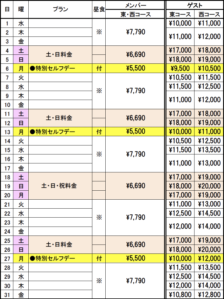 キャディー付の場合はお一人様¥4,400~増となります